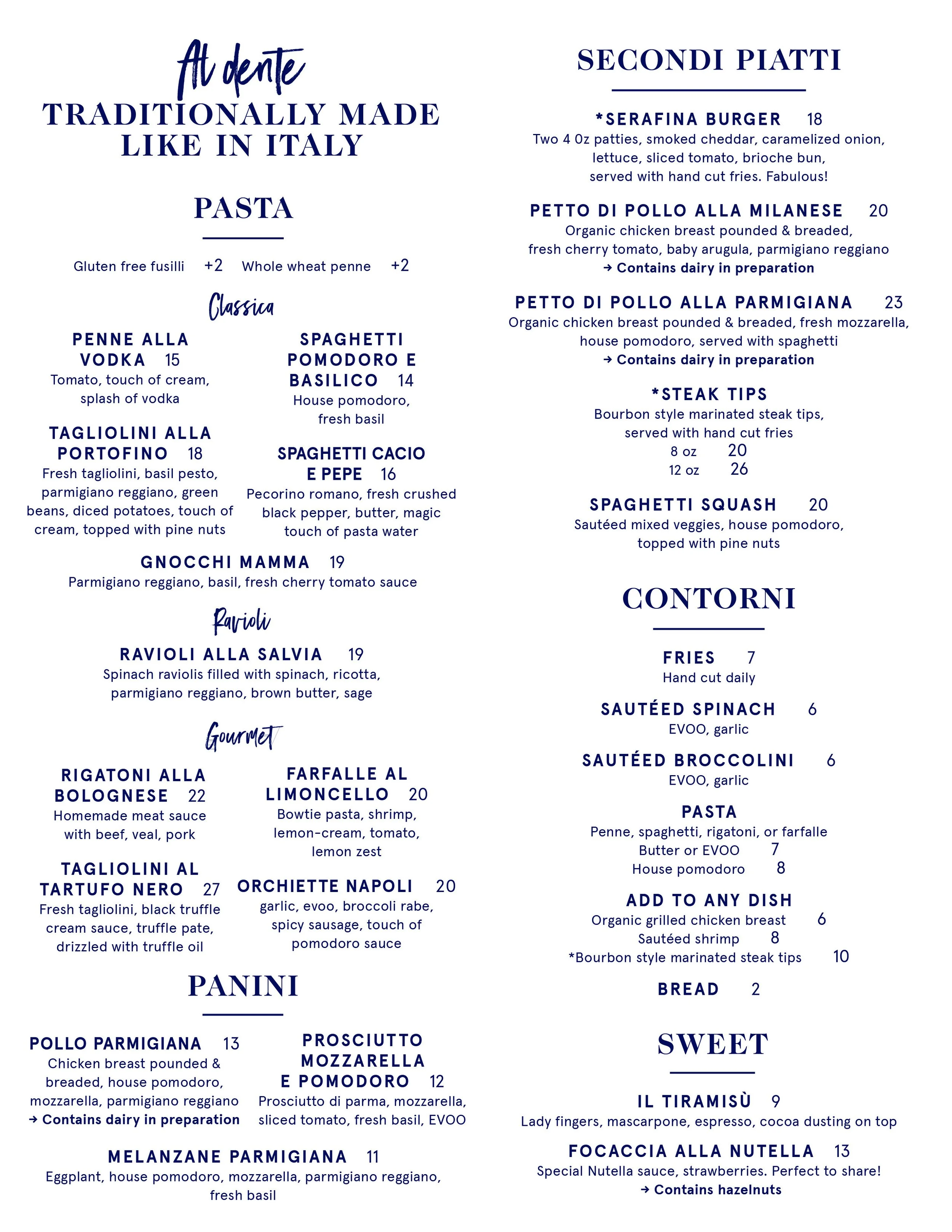 Serafina MenusFollowed Serafina brand guidelines to create outdoor signage, takeout menu, dine-in menu, and drinks menu Visit Website to Download Menu