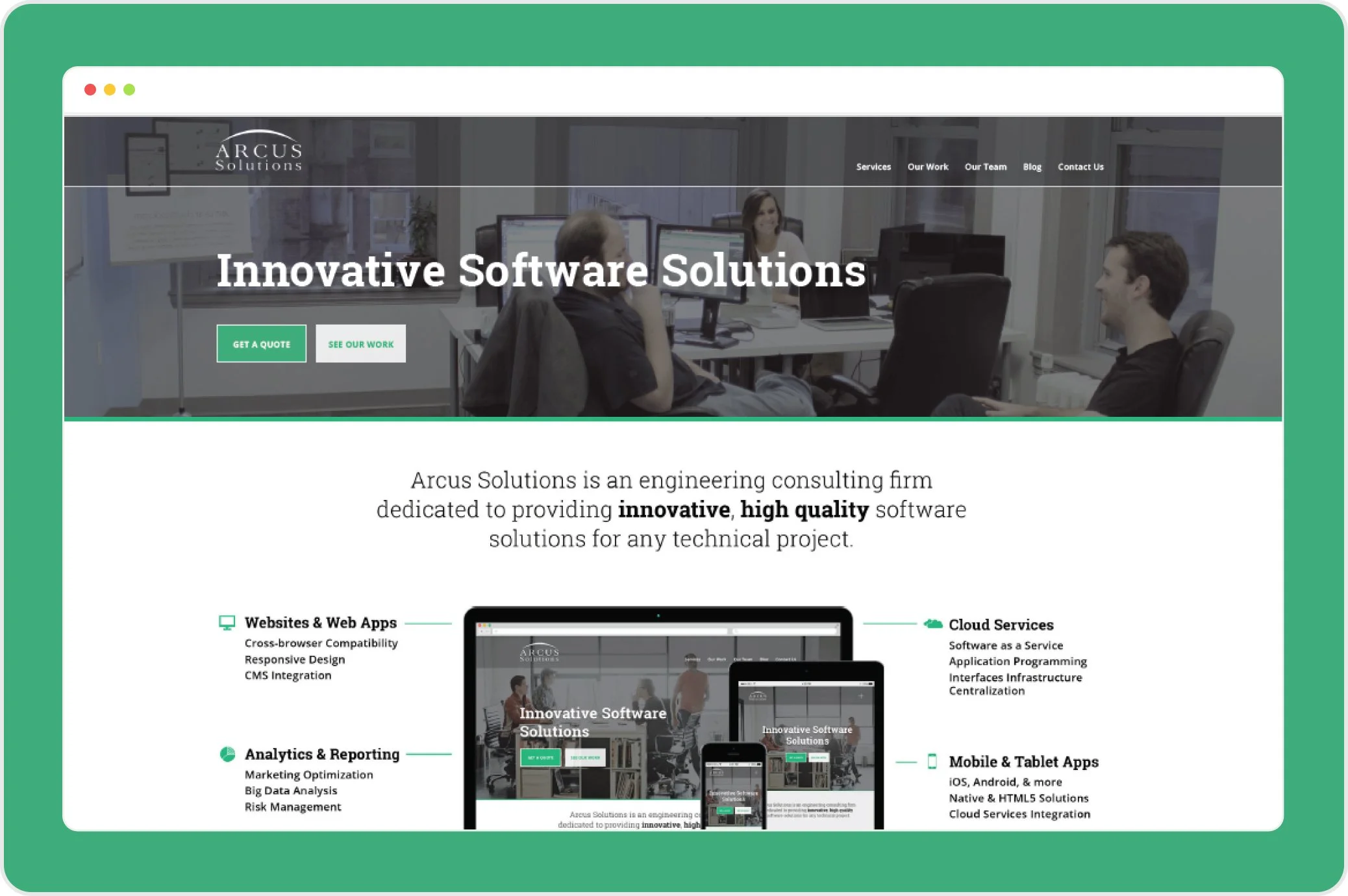 As the principle designer, I was involved in the creation of the Arcus Solutions brand, website, and content.