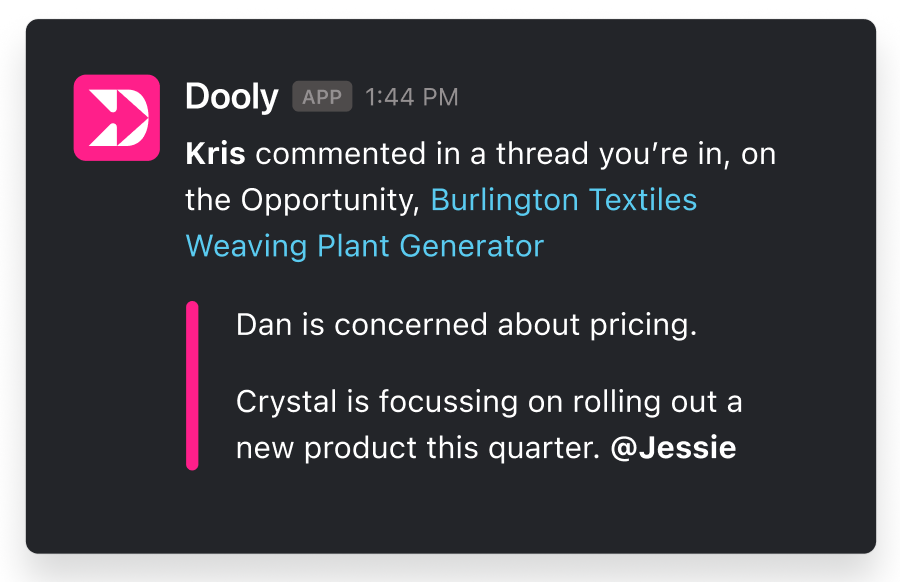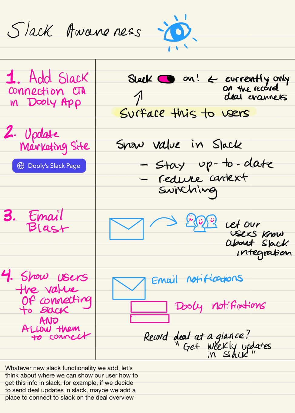 Our users are Account Executives who regularly must context switch and live in many applications at once. Our task was to provide collaborative tools in our application without adding to that pain point. We discovered that our users primarily communicate with their team members via Slack and frequently check notifications in multiple applications.